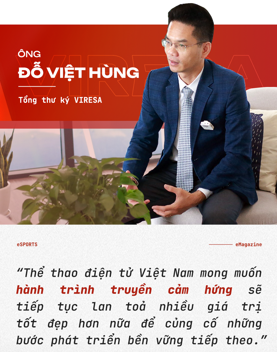 Trong những ngày cuối năm 2022, trao đổi với PV về những gì đã làm được và những công việc chuẩn bị cho kỳ SEA Games 32 tại Campuchia, ông Đỗ Việt Hùng - Tổng thư ký VIRESA chia sẻ: “Esports Việt Nam có thành công ngày hôm nay nhờ sự cộng hưởng của nhiều yếu tố. Đó là thành quả của những nỗ lực và sự nghiêm túc với nghề nghiệp của các vận động viên trong nhiều năm. Song song với đó là sự hậu thuẫn và động viên của Tổng cục Thể dục thể thao, Bộ VH-TT-DL, các nhà phát hành, các nhà đầu tư tổ chức eSports, các nhà tổ chức sự kiện và sản xuất nội dung, các cơ quan truyền thông. Và quan trọng nhất chính là tình yêu thương, cổ vũ của khán giả và người hâm mộ.
