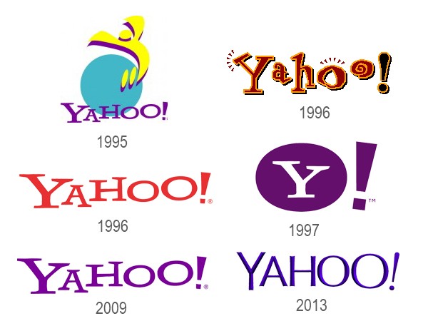 Yahoo, thương hiệu từng gắn liền với tuổi thơ của không biết bao nhiêu thế hệ 8X, 9X, cũng có một lịch sử phát triển logo khá thú vị. Đầu tiên vào năm 1995, Yahoo! mang đến một hình ảnh người nhảy cẫng lên vui sướng, tuy nhiên ngay sau đó 1 năm họ lại đổi logo về kiểu font chữ điện tử vui nhộn. Logo năm 2009 có lẽ là hình ảnh quen thuộc nhất với chúng ta khi nhắc đến thương hiệu Yahoo!