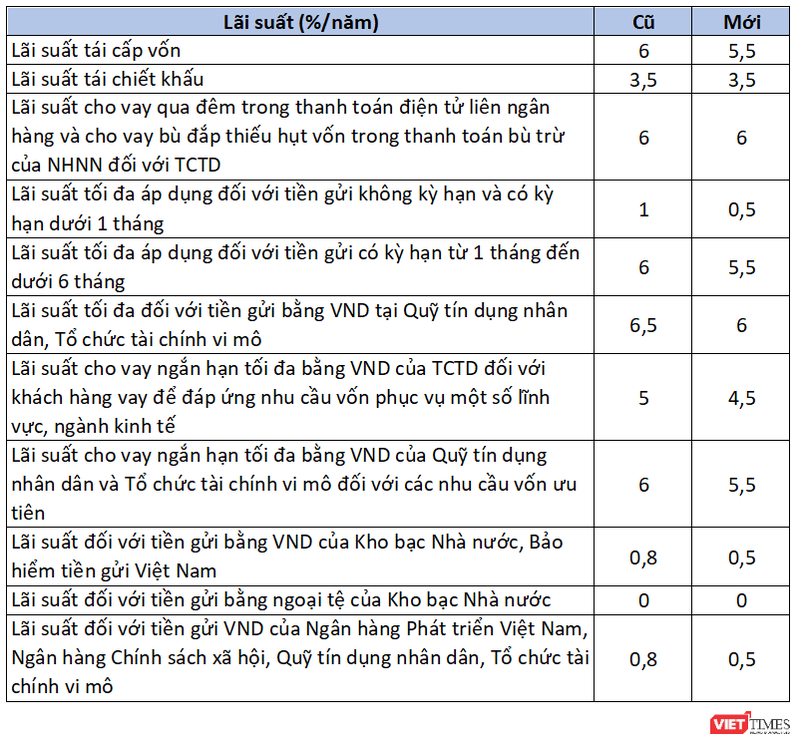 Theo đó, lãi suất tái cấp vốn giảm từ mức 6%/năm xuống 5,5%/năm.