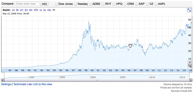 Diễn biến cổ phiếu Microsoft từ những năm 1990 đến nay