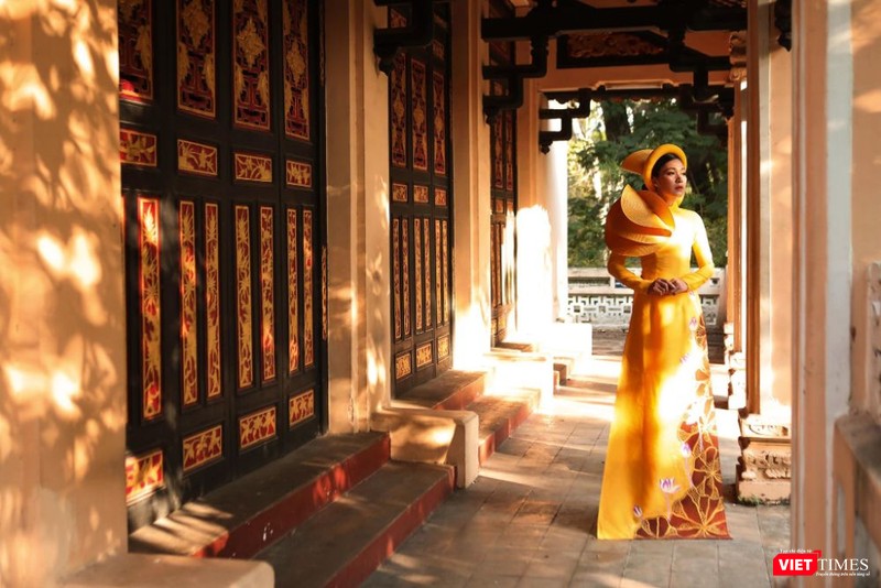 Diễn viên điện ảnh Đinh Y Nhung trong áo dài Việt Hùng đẹp lộng lẫy sắc xuân