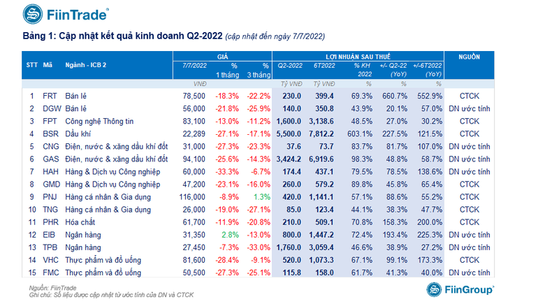 Thông tin này được FiinTrade đề cập trong báo cập nhật lần 2 về kết quả kinh doanh quý 2/2022 của các doanh nghiệp niêm yết.