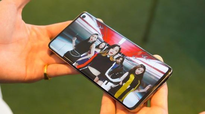 Samsung gọi đó là màn hình Infinity-O và màn hình chỉ chừa một “nốt ruồi nhỏ” để đặt camera selfie, cho tỷ lệ hiển thị màn hình lên đến 93,4%, cao hơn rất nhiều so với mức 86% trên iPhone XS.