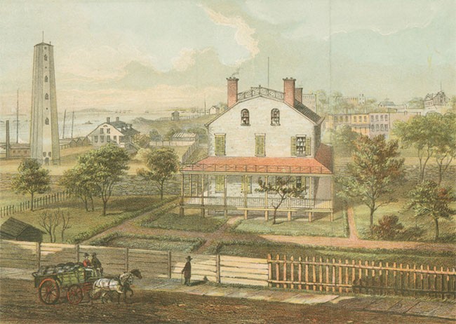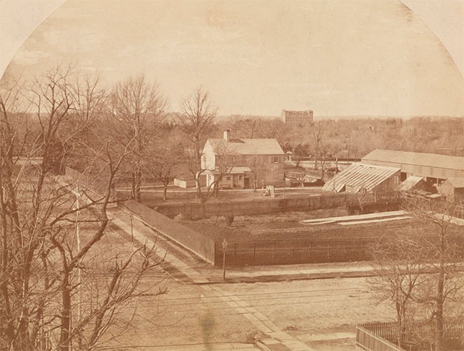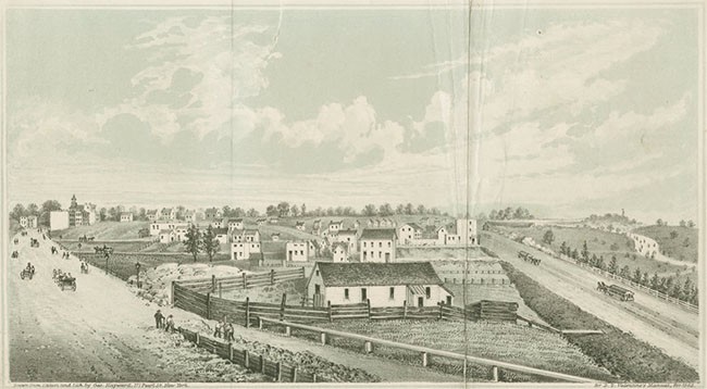 4. Hình minh họa năm 1862 này mô tả một trang trại hình tam giác ở Upper West Side của Manhattan trong cuộc nội chiến. Thuế cao đã làm nản lòng các chủ đất xây dựng trên lô đất của họ và khu vực này không phát triển toàn diện cho đến những năm 1880.