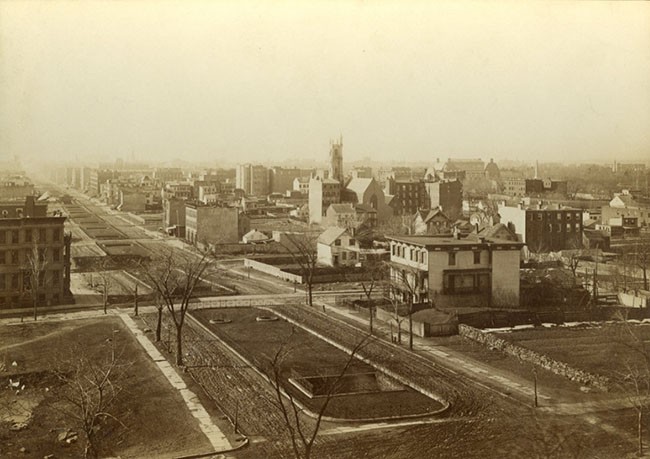 16. Bức ảnh này được chụp vào năm 1882 từ mái của một biệt thự thuộc về George Ehret, một nhà sản xuất bia thành công và là một trong những người New York giàu có đầu tiên chuyển đến Prospect Hill (nay là Carnegie Hill).