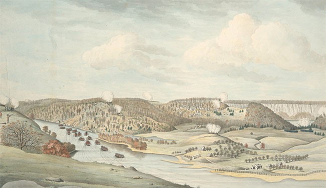 2. Vào thời điểm đó, thành phố New York (sau đó được gọi là New Amsterdam) đặc trưng với những ngọn đồi, rừng, tảng đá, trang trại và những ngôi nhà cách xa nhau. Hình minh họa năm 1776 này là Đại học Heights ngày nay ở Bronx.
