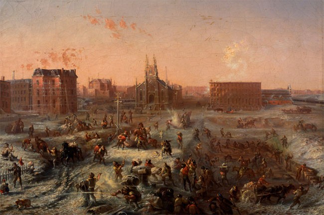 12. Năm 1864, The New York Times ước tính rằng có 20.000 người chiếm đất, người phải đối mặt với một chu kỳ liên tục của việc trục xuất và tái định cư, sống ở Manhattan. Khi thành phố phát triển về phía bắc, người nhập cư Đức và Ireland không thể tìm thấy nhà ở giá rẻ được xây dựng bằng gỗ.