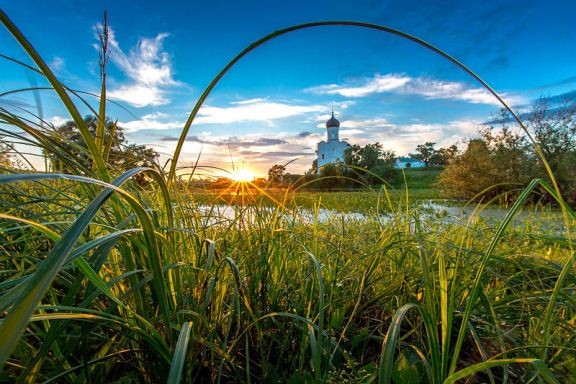 Bãi cỏ Bogolyubov - Nhà thờ Pokrov thuộc quận Nerl vùng Suzdal. Ảnh của Mikhail Shmelev.