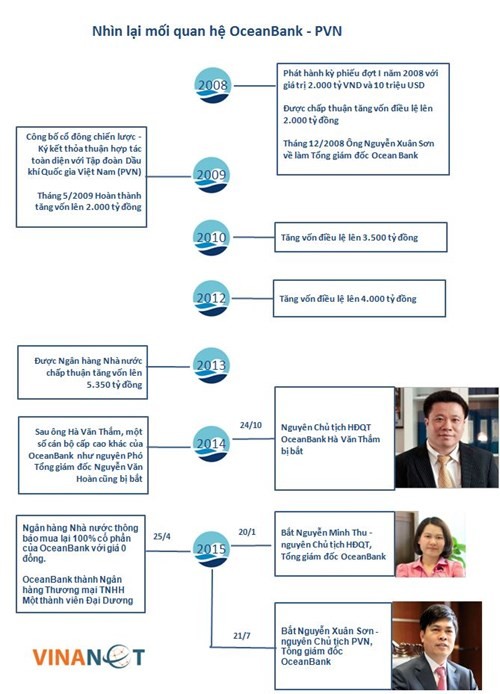 Mới đây, Nguyên Chủ tịch PVN Nguyễn Xuân Sơn cũng bị khởi tố vì những sai phạm trong thời gian đảm nhiệm vị trí Thành viên HĐQT, Tổng Giám đốc OceanBank.