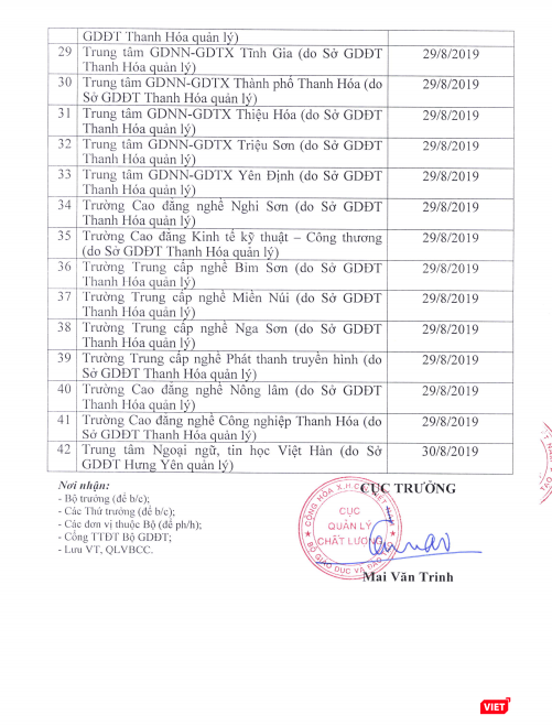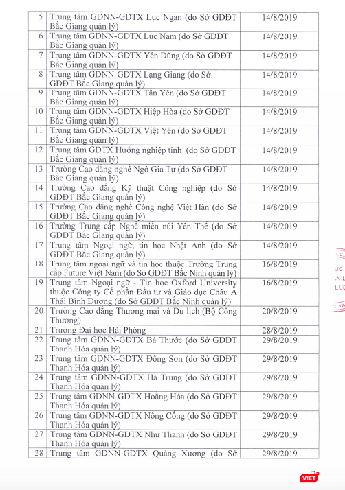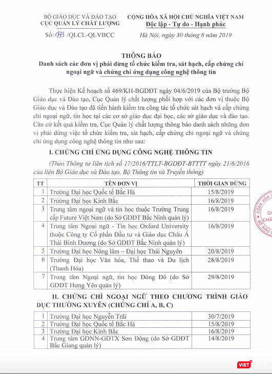 Dưới đây là danh sách những đơn vị phải dừng việc tổ chức kiểm tra, sát hạch, cấp chứng chỉ ngoại ngữ và chứng chỉ ứng dụng công nghệ thông tin.
