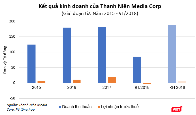 Tuy nhiên, theo kết quả kinh doanh được công bố gần nhất, Thanh Niên Media Corp mới chỉ hoàn thành 45,24% kế hoạch, ghi nhận khoản lỗ trước thuế lũy kế 2,4 tỷ đồng sau 9 tháng đầu năm 2018.