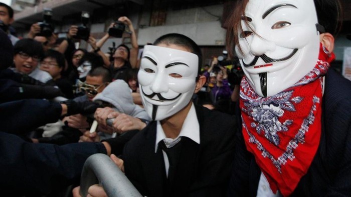 Năm 2003, Anonymous được thành lập trên một diễn đàn ẩn danh của web 4chan. Năm 2008, nhóm đã vô hiệu hóa các trang mạng, hệ thống fax và giảm thứ hạng tìm kiếm của Khoa luận giáo (Church of Scientology) trên Google. Tháng 3/2008, xuất hiện nhóm người diễu hành với mặt nạ Guy Fawkes. Theo The New Yorker, dù được theo dõi bởi FBI hay nhiều cơ quan điều tra khác, việc xác định và loại bỏ nhóm Anonymous vẫn là bất khả thi. Ảnh: NY Times.