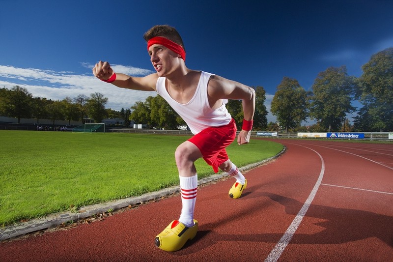 Anh Andre Ortolf người Đức có thể đi guốc gỗ chạy hết 100 mét trong vòng 16,27 giây.
