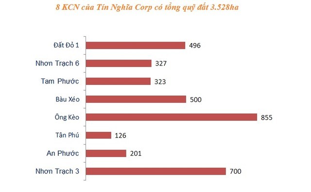 Bên cạnh Sonadezi, Tổng Công ty Tín Nghĩa cũng được xem như “ông lớn” địa ốc tại Đồng Nai. Cho đến nay, quỹ đất KCN của Tín Nghĩa ước chừng khoảng trên 3.500ha, với các dự án lớn như KCN Nhơn Trạch 3 (700 ha), KCN Tam Phước (323 ha), KCN Nhơn Trạch 6 (hơn 300 ha), KCN Bàu Xéo tỉnh Đồng Nai (gần 500 ha)…