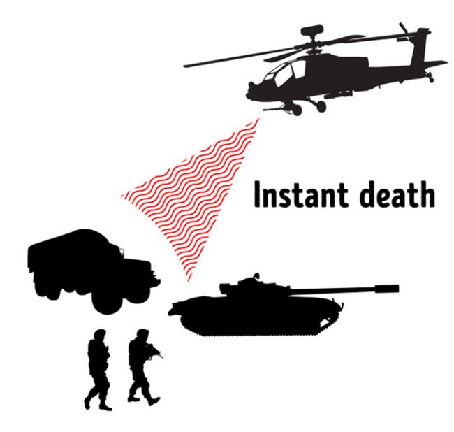 Theo các nhà khoa học, các thiết bị tạo ra một khối lượng năng lượng mà có thể được sử dụng để tiêu diệt máy bay, máy móc thiết bị, hoặc thậm chí toàn bộ một đơn vị quân đội trong vòng bán kính 200 dặm.
