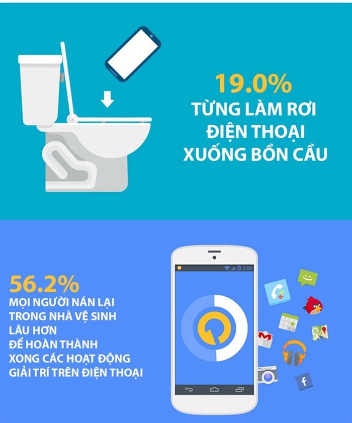 Sử dụng điện thoại trong nhà vệ sinh: Đây chắc hẳn là thói quen của rất nhiều người. Hãy bỏ ngay nó nhé. Nó khiến smartphone của bạn bám đầy vi khuẩn bởi bạn đâu rửa được smartphone như rửa tay sau khi đi vệ sinh.