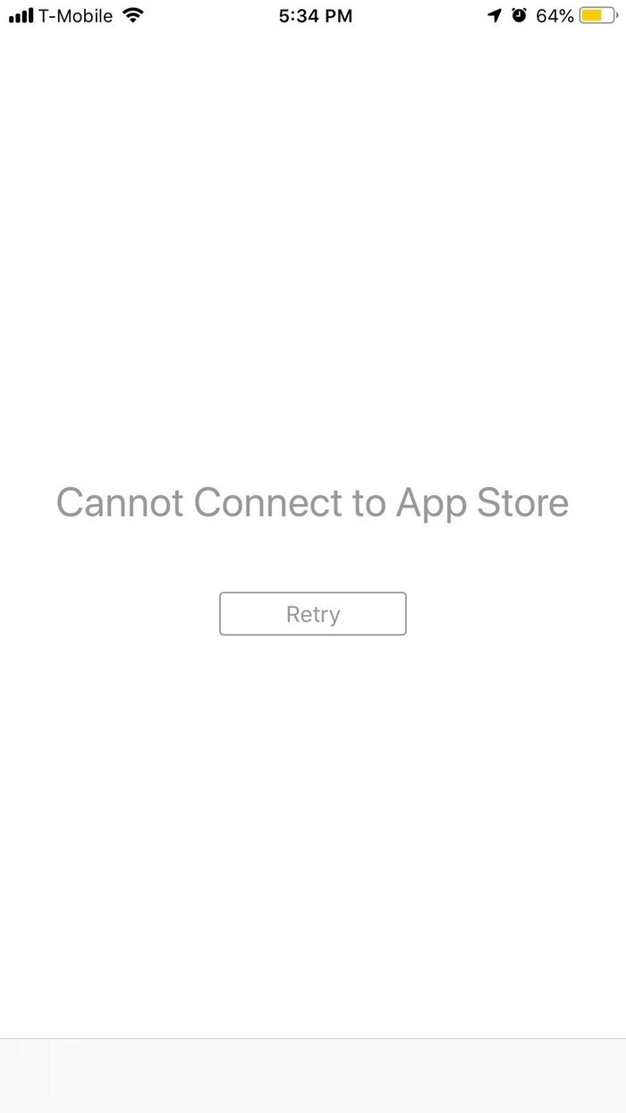 Đến thời điểm chiều thứ ba (theo giờ địa phương), App Store cũng "nối gót" Facebook, ngừng hoạt động đối với những người dùng iPhone và khiến dịch vụ Apple Music bị ảnh hưởng. Người dùng iPhone nhận được thông báo lỗi này khi họ cố truy cập vào App Store: