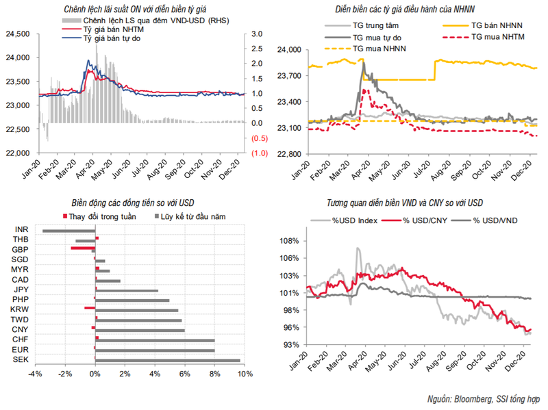 Theo SSI, diễn biến quốc tế và cung cầu ngoại tệ trong nước khá thuận lợi nên tỷ giá USDVND sẽ giữ xu hướng đi ngang.