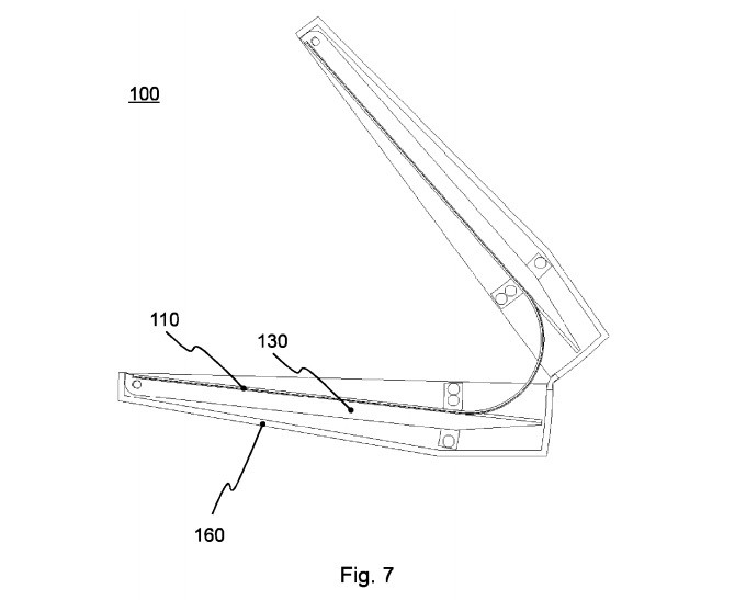 Những hình ảnh minh họa từ hồ sơ bằng sáng chế gợi ý về một thiết bị có thiết kế giống như gương bỏ túi. Nó gồm 2 phần tương đương nhau và kết nối lại bằng một bản lề. Thay vì sử dụng 2 màn hình, thiết bị sử dụng một màn hình linh hoạt (có thể uốn dẻo hoặc gập lại) duy nhất nằm phía trên bản lề.