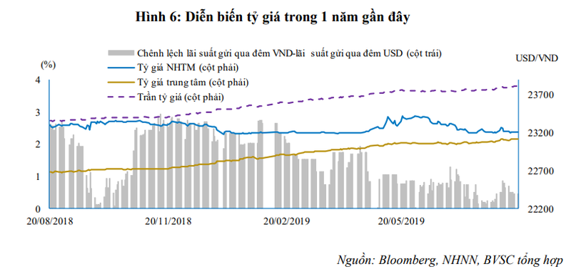 Theo báo cáo, nguồn cung ngoại tệ được dự báo vẫn dồi dào trong thời gian tới nhờ các thương vụ mua bán, sáp nhập trong cuối năm 2019 như: BIDV (Mã CK: BID) sẽ bán 15% vốn cho KEB Hana Bank tương đương với khoảng 882 triệu USD, Vietcombank (Mã CK: VCB) có khả năng bán 6,5% cổ phần, Ngân hàng Quân Đội (Mã CK: MBB) dự kiến bán 7,5% vốn cho nước ngoài.