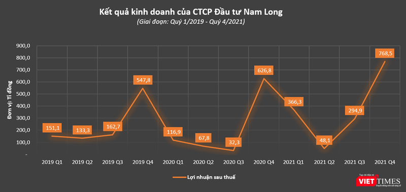 Trừ đi chi phí, NLG báo lãi sau thuế 768,5 tỉ đồng, tăng 21% so với cùng kỳ năm trước. Song, nếu trừ đi phần lợi nhuận sau thuế của cổ đông không kiểm soát, lợi nhuận sau thuế của cổ đông công ty mẹ NLG chỉ đạt 361,3 tỉ đồng, giảm tới 42% so với cùng kỳ quý 4/2020.