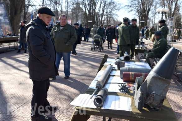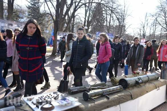 Trước khi khai mạc triển lãm, chính quyền thành phố đã tổ chức cuộc mít tinh, với sự tham gia đông đảo của người dân và bộ máy lãnh đạo nước Cộng hòa. Những người tham gia cuộc biểu tình thực hiện một phút im lặng để tưởng niệm những chiến sĩ dân quân thiệt mạng trong chiến dịch tấn công trừng phạt của các lực lượng vũ trang Kiev. Ca sĩ nhạc rock nổi tiếng người Nga Yulia Chicherina cùng tham gia cuộc mít tinh và thăm triển lãm.