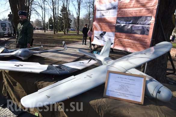 Ngoài ra, khách tham quan có thể xem các máy bay không người lái quân đội Ukraina, bị các dân quân Donetsk bắn hạ. Trong số đó có cả UAV trinh sát và UAV tấn công.