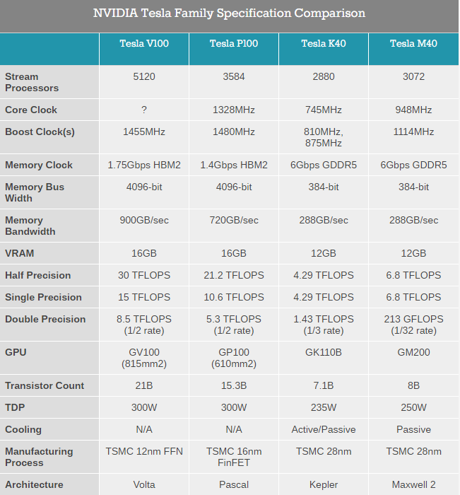 Bảng so sánh thông số kỹ thuật các dòng card Tesla của NVIDIA