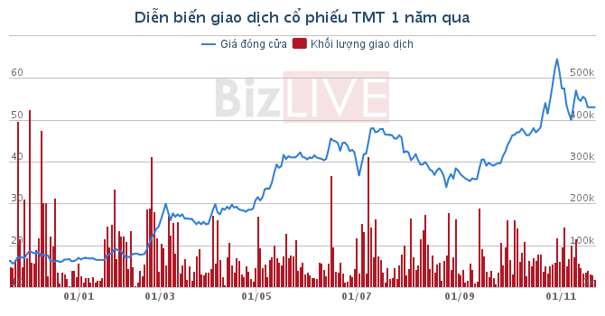 Quả thực sau chưa đầy 3 năm, doanh thu và lợi nhuận của TMT đã tăng trưởng thần tốc và giá cổ phiếu hiện đã vượt 50.000 đồng/cổ phiếu.