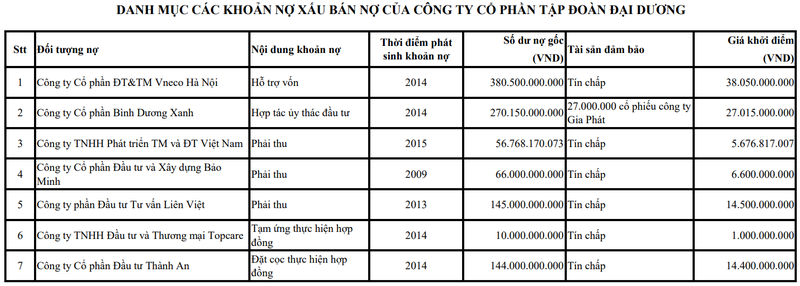 CTCP Tập đoàn Đại Dương (Mã CK: OGC) vừa thông báo bán đấu giá 7 khoản nợ phải thu có tổng số dư nợ gốc lên tới 1.072,4 tỉ đồng, chủ yếu là các khoản vay tín chấp (không có tài sản đảm bảo). Thương vụ dự kiến tổ chức vào ngày 4/6/2022.