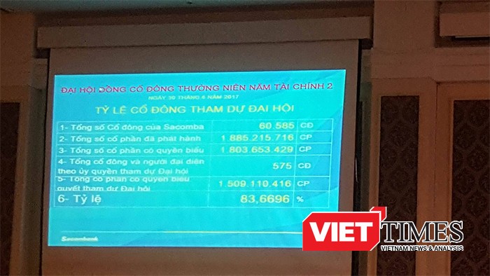 VietTimes -- Sáng nay (30/06/2017), Ngân hàng TMCP Sài Gòn Thương Tín (Sacombank; Mã chứng khoán: STB) chính thức tổ chức họp đại hội đồng cổ đông thường niên năm 2017. Lưu ý, đây là đại hội gộp cho hai niên độ tài chính 2015 và 2016 (Năm ngoái 2016, vì nhiều lý do, STB đã không tổ chức đại hội đồng cổ đông thường niên năm 2016).