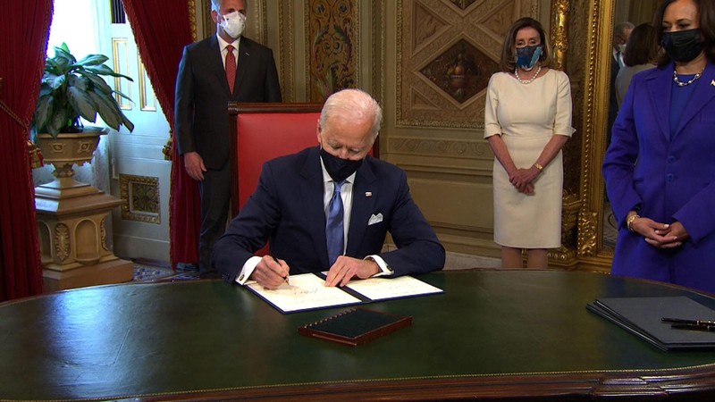 Tổng thống Biden ký 3 tài liệu trong lúc làm việc tại phòng của Tổng thống. Sau đây là các văn bản ông đã ký: