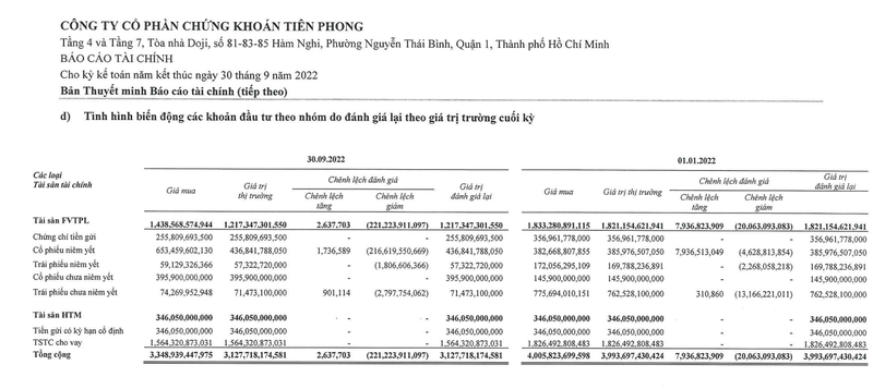 Cụ thể, tính đến ngày 30/9/2022, tài sản tài chính ghi nhận thông qua lãi/lỗ (FVTPL) của ORS có giá trị ghi sổ đạt 1.438,5 tỉ đồng, giảm 21,5% so với đầu năm. Trong khi đó, ORS ghi nhận giá trị hợp lý của 'danh mục' này chỉ ở mức 1.217,3 tỉ đồng, thấp hơn 15,3% so với giá trị ghi sổ.
