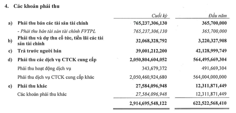 Trong đó, phải thu các dịch vụ công ty chứng khoán cung cấp đạt 2.050 tỉ đồng, tăng gấp 3,6 lần so với đầu năm.