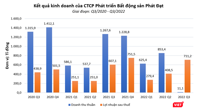 Tuy nhiên, doanh thu hoạt động tài chính tăng đột biến lên 1.249 tỉ đồng (chỉ tiêu này trong quý 3/2021 là 0,46 tỉ đồng) nên kết thúc quý 3/2022, PDR vẫn báo lãi sau thuế lên tới 711,2 tỉ đồng, tăng 17,1% so với cùng kỳ năm trước.