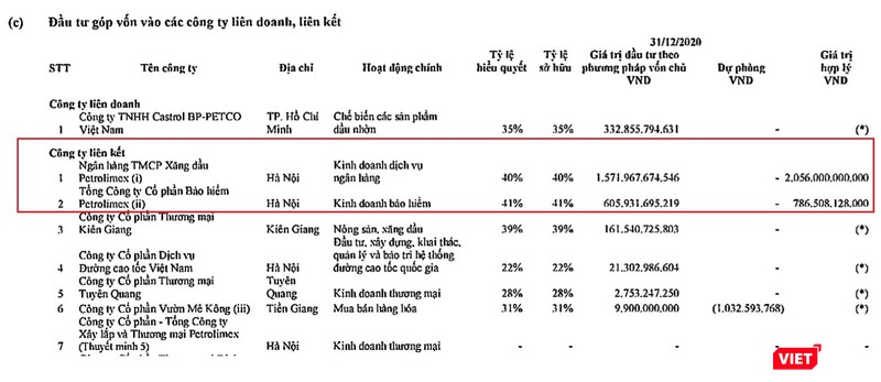 Tính đến ngày 31/12/2020, tỷ lệ sở hữu của Petrolimex tại PG Bank ở mức 40%, với giá vốn được ghi nhận ở mức 1.571,9 tỉ đồng, giá trị hợp lý ở mức 2.056 tỉ đồng.