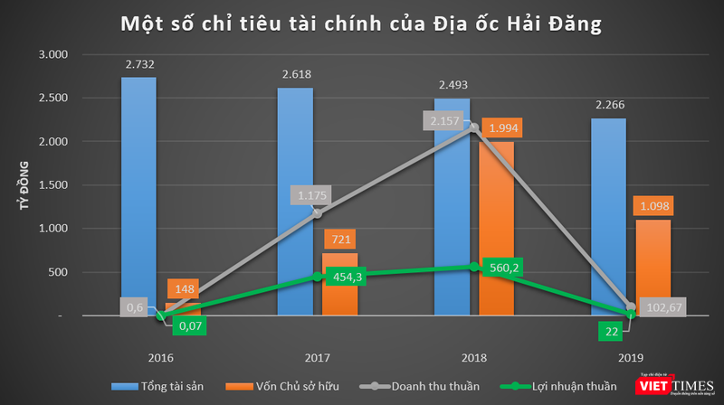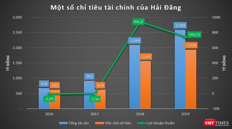 Như năm 2016 và 2017, Hải Đăng lỗ thuần lần lượt ở mức 2,49 tỷ đồng và 1,56 tỷ đồng. Tuy nhiên, năm 2018 và 2019, doanh nghiệp này bất ngờ báo lãi với lãi thuần lần lượt đạt 941,6 tỷ đồng và 744,73 tỷ đồng.