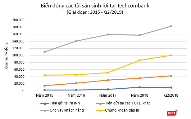 Tính đến ngày 30/6/2019, giá trị chứng khoán đầu tư của Techcombank đạt 100.234 tỷ đồng, tăng 2,26 lần so với cuối năm 2015. Trong đó, chứng khoán nợ do các tổ chức kinh tế trong nước phát hành do Techcombank nắm giữ có số dư 45.456 tỷ đồng, tăng 5,58 lần so với năm 2015. Đó là chưa kể khoản chứng khoán đầu tư nắm giữ đến ngày đáo hạn 14.406 tỷ đồng mà ngân hàng này nắm giữ tính đến cuối Quý 2/2019.