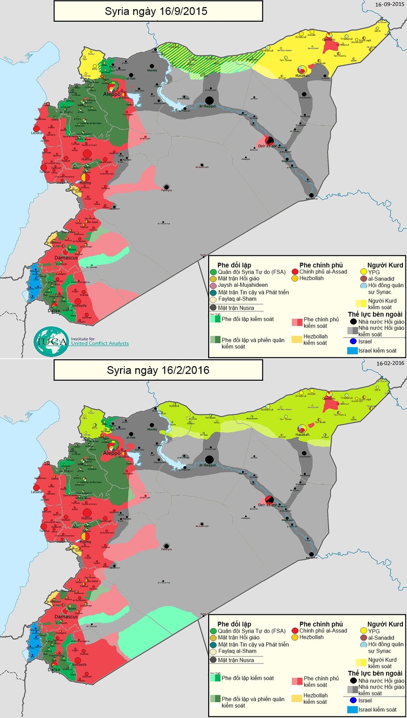Phân chia chiến trường Syria trước và sau khi Nga can thiệp