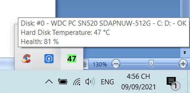 Biểu tượng của phần mềm nằm trên khay hệ thống của Windows để hiển thị các thông tin về tình trạng ổ cứng.