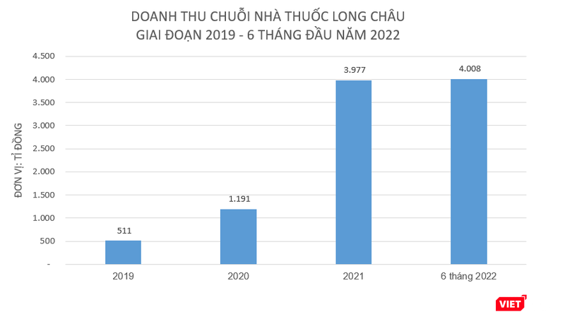 Năm 2019 doanh thu Long Châu đạt 511 tỉ đồng, chỉ chiếm 3% tổng doanh thu của FPT Retail. Đến nửa đầu năm 2022, doanh thu của chuỗi đã lên tới 4.008 tỉ đồng, đóng góp đến 35% doanh thu cho công ty mẹ.