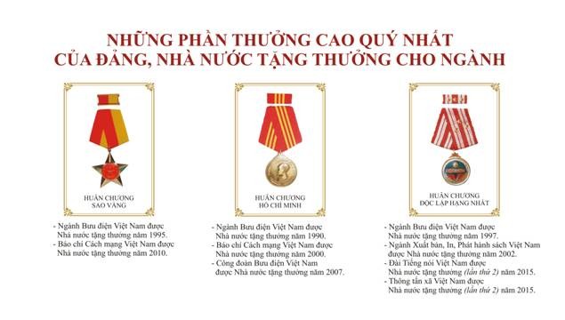 Trải qua hơn 70 năm xây dựng và phát triển, ngành Thông tin và Truyền thông xứng đáng là một ngành trung kiên trong kháng chiến, đi đầu trong đổi mới. Các lĩnh vực hoạt động của Ngành như Báo chí, Xuất bản, Bưu chính, Viễn thông, Công nghệ thông tin đã được Đảng, Nhà nước trao tặng nhiều phần thưởng cao quý: Huân chương Sao Vàng, Huân chương Hồ Chí Minh, Huân chương Độc lập hạng Nhất, Huân chương Lao động hạng Nhất và Huân chương Chiến công hạng Nhất...
