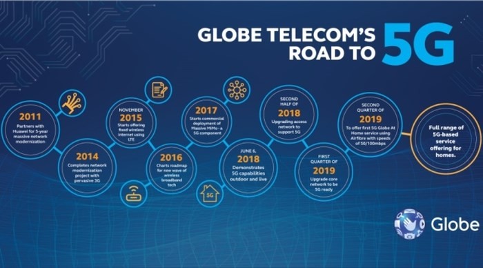 Để đảm bảo khai trương đúng lộ trình đã đề ra, trong 6 tháng cuối năm nay, với sự hỗ trợ công nghệ và thiết bị từ Huawei, Globe Telecom sẽ cho nâng cấp mạng truy cập lên 5G. Trong 6 tháng đầu năm 2019, Globe Telecom sẽ nâng cấp và thử nghiệm hệ thống mạng lõi để sẵn sàng cung cấp dịch vụ 5G thương mại vào 6 tháng cuối năm.