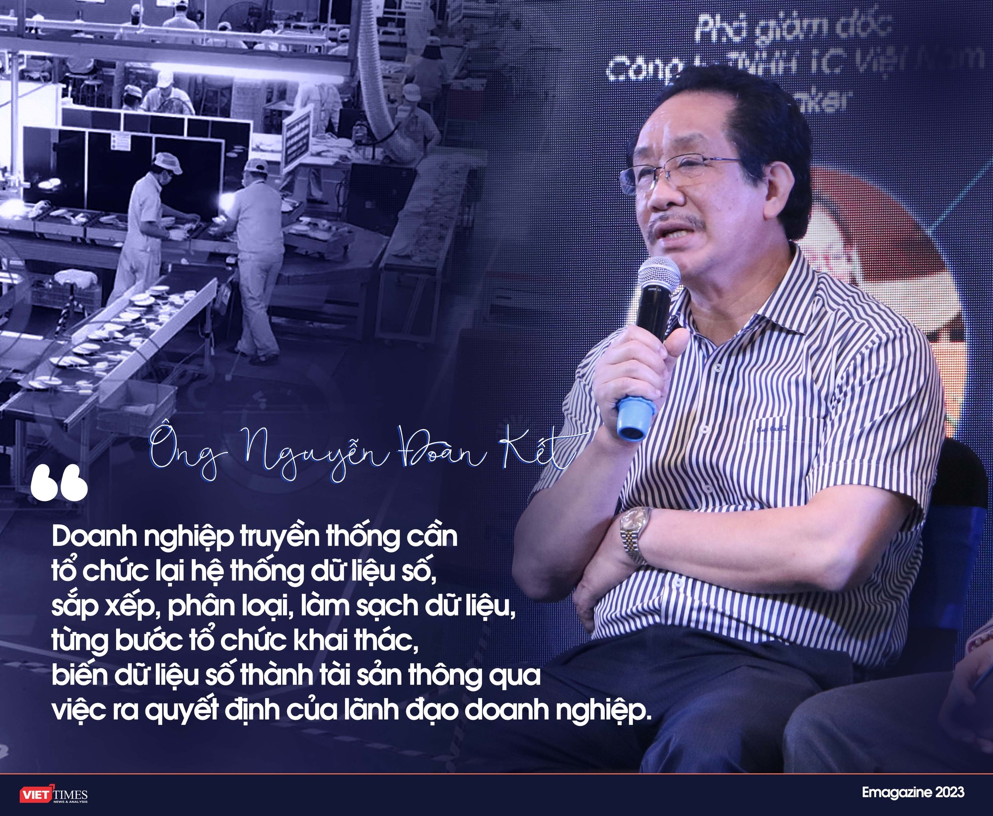 Ông Nguyễn Đoàn Kết: Với quá trình 62 năm hoạt động, chúng tôi đã thu thập vô cùng nhiều dữ liệu: Dữ liệu trong khu vực sản xuất, Dữ liệu khách hàng, Dữ liệu điều hành, Dữ liệu tài chính, Dữ liệu nguồn nhân lực, Dữ liệu về quản lý tri thức, Dữ liệu về R&D, Dữ liệu về các nền tảng kinh doanh, Dữ liệu về vòng đời sản phẩm và rất khó có thể kể hết ở đây.