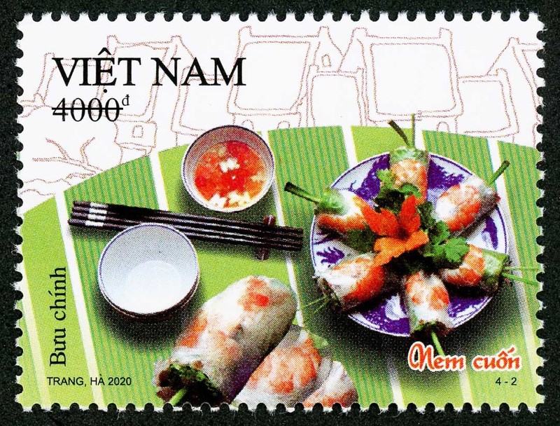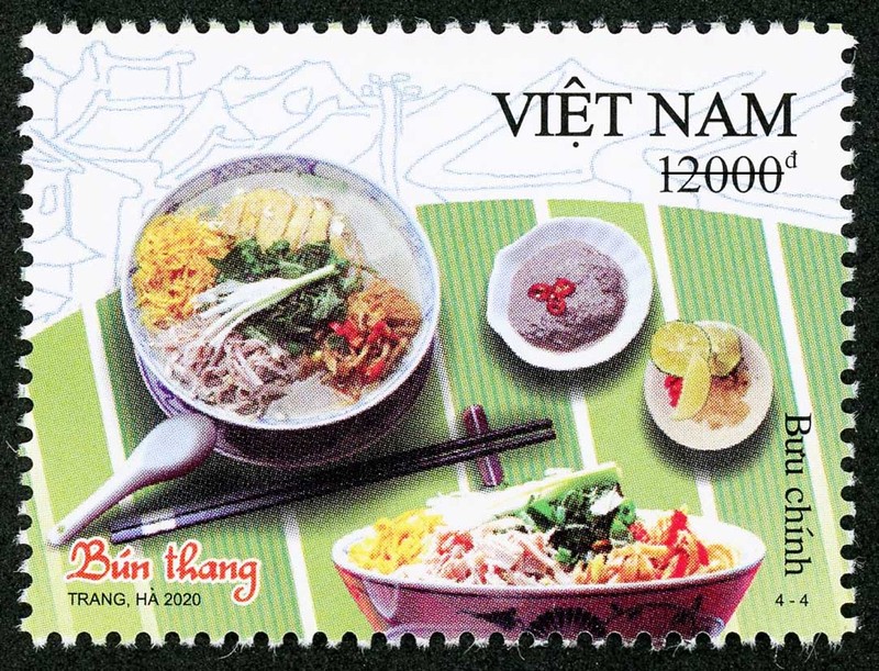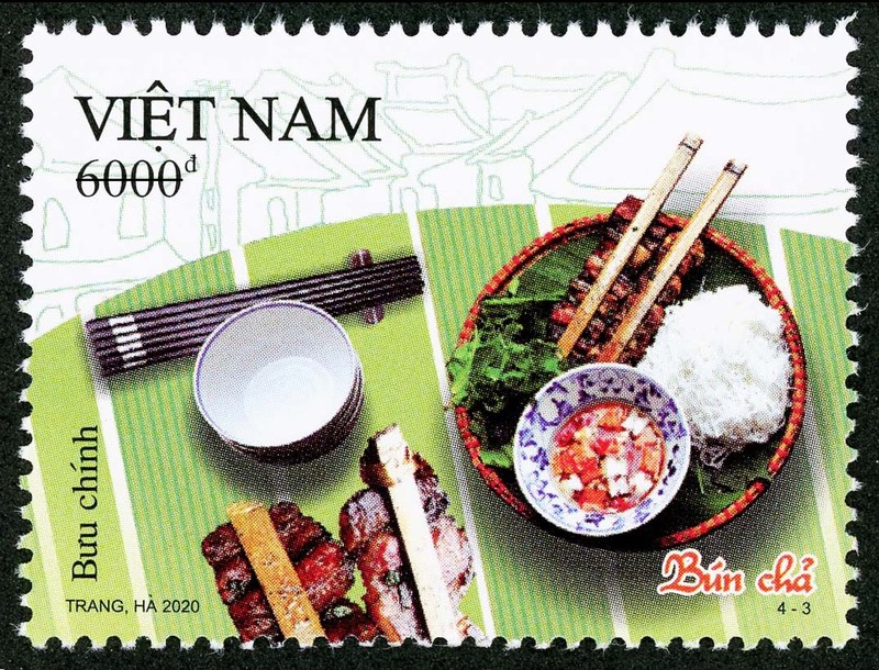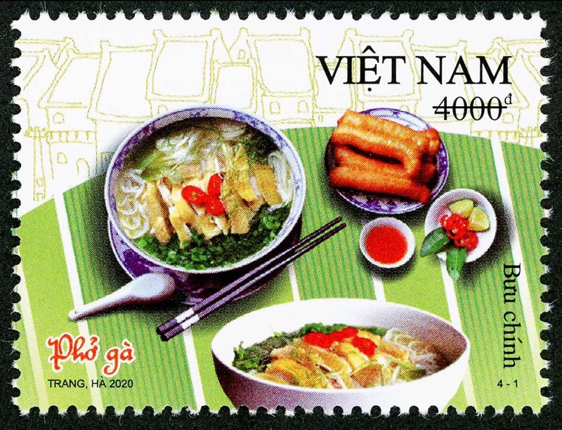 Bộ tem “Ẩm thực Việt Nam” mà Bộ Thông tin và Truyền thông vừa phát hành gồm 04 mẫu, giới thiệu “Phở gà”, “Nem cuốn”, “Bún chả”, “Bún thang” với giá mặt từ 4.000 đồng đến 12.000 đồng.