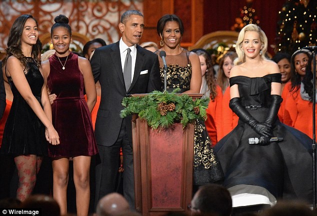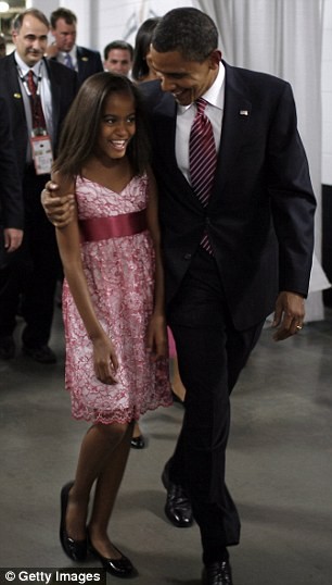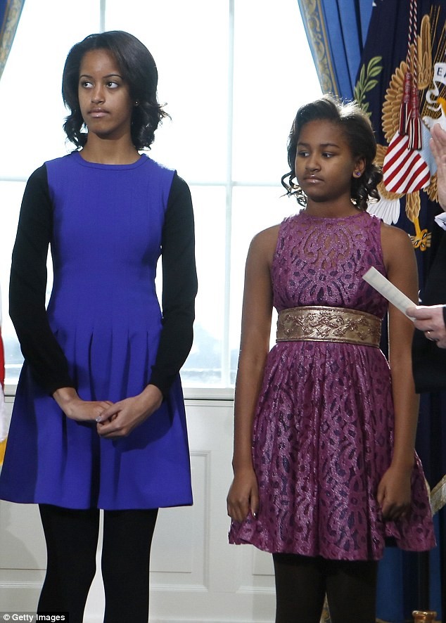 Sasha và Malia cùng vợ chồng tổng thống Obama năm 2013.