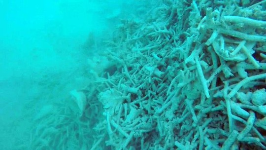 Các mảnh san hô chết trắng. Ảnh: BBC