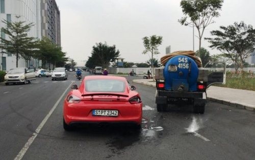 Chiều 26/3, xe hút hầm cầu chạy trên đường C - đường nội bộ Phú Mỹ Hưng (quận 7, TP HCM) hướng ra Tân Trào - bất ngờ bị ôtô Porsche Cayman GTS chạy hướng ngược lại đâm trực diện.
