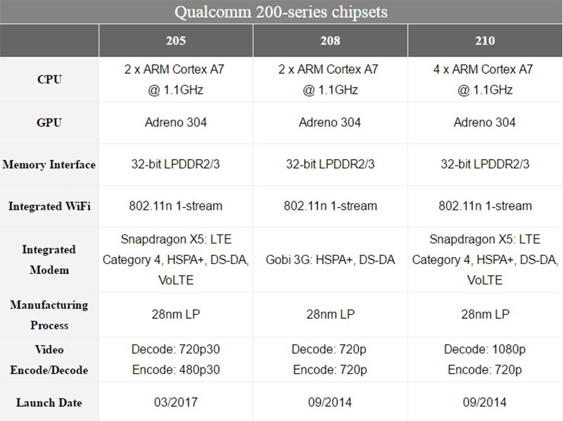 Chip 205 là bản nâng cấp mới nhất cho dòng chip 200 sau khi Qualcomm cho ra mắt Snapdragon 212 hồi tháng 7 năm 2015. Chip 205 không được gọi là Snapdragon 205 vì hồi đầu tuần Qualcomm đã tuyên bố chỉ những chip cao cấp mới được mang thương hiệu Snapdragon. Các vi xử lý giá rẻ sẽ mang thương hiệu “Mobile”.