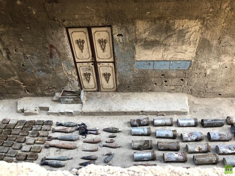Căn hầm và kho vũ khí quân cảnh Nga phát hiện được ở ngoại ô Damascus. Ảnh: RT.